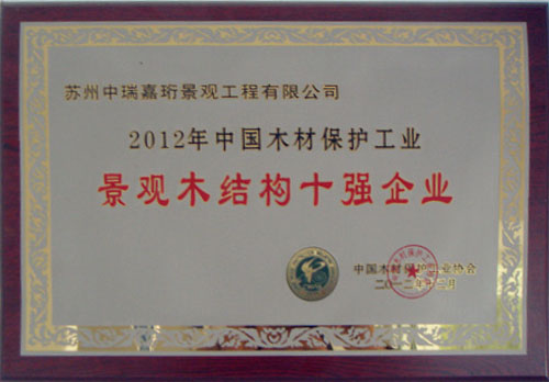 2012年景觀木結(jié)構(gòu)十強(qiáng)企業(yè)證書